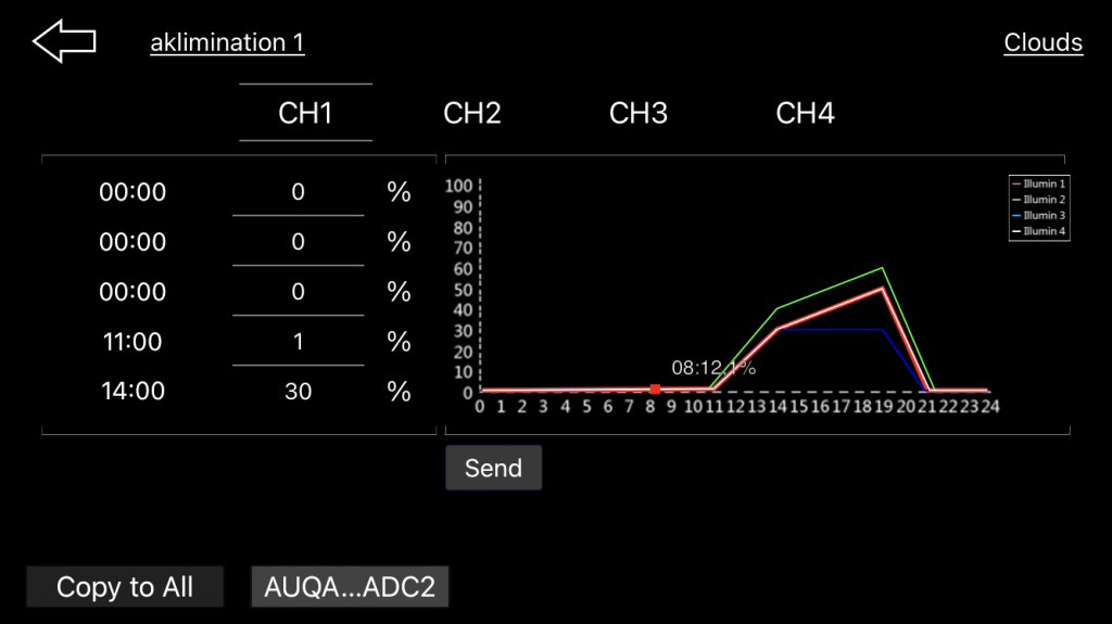 cirkulation. Og en hqi lampe med en pære på 6500 k (pisgult vand)