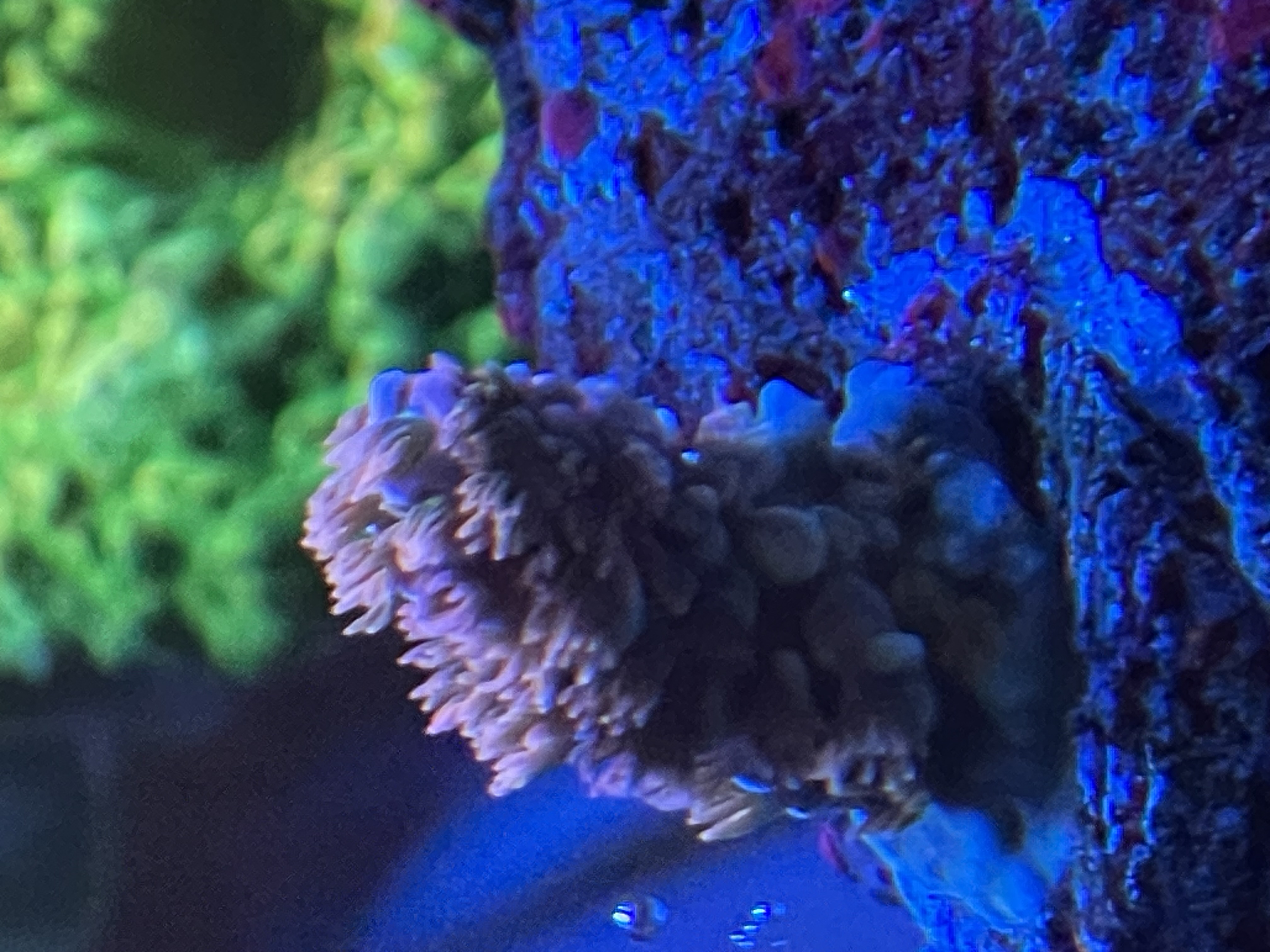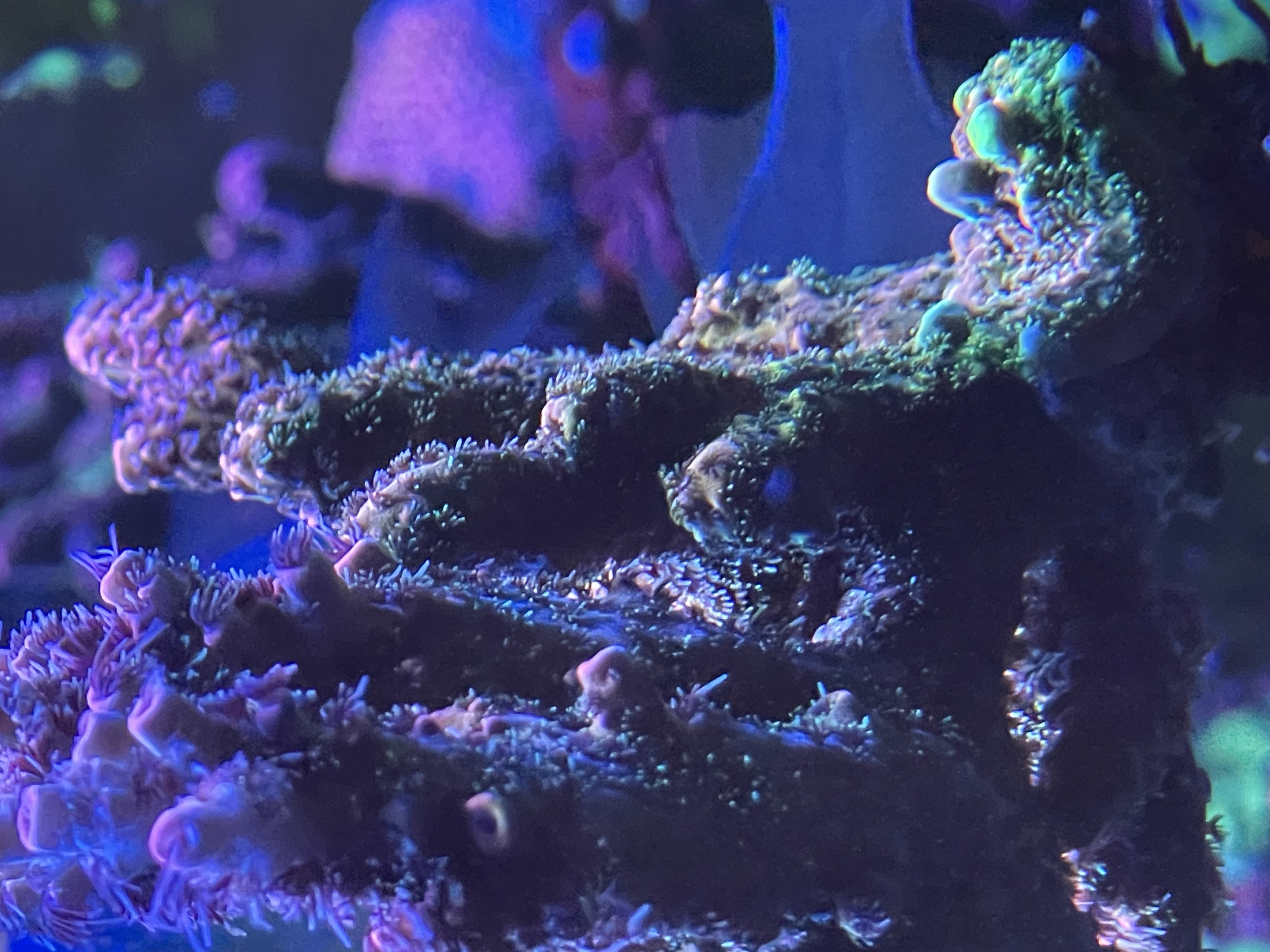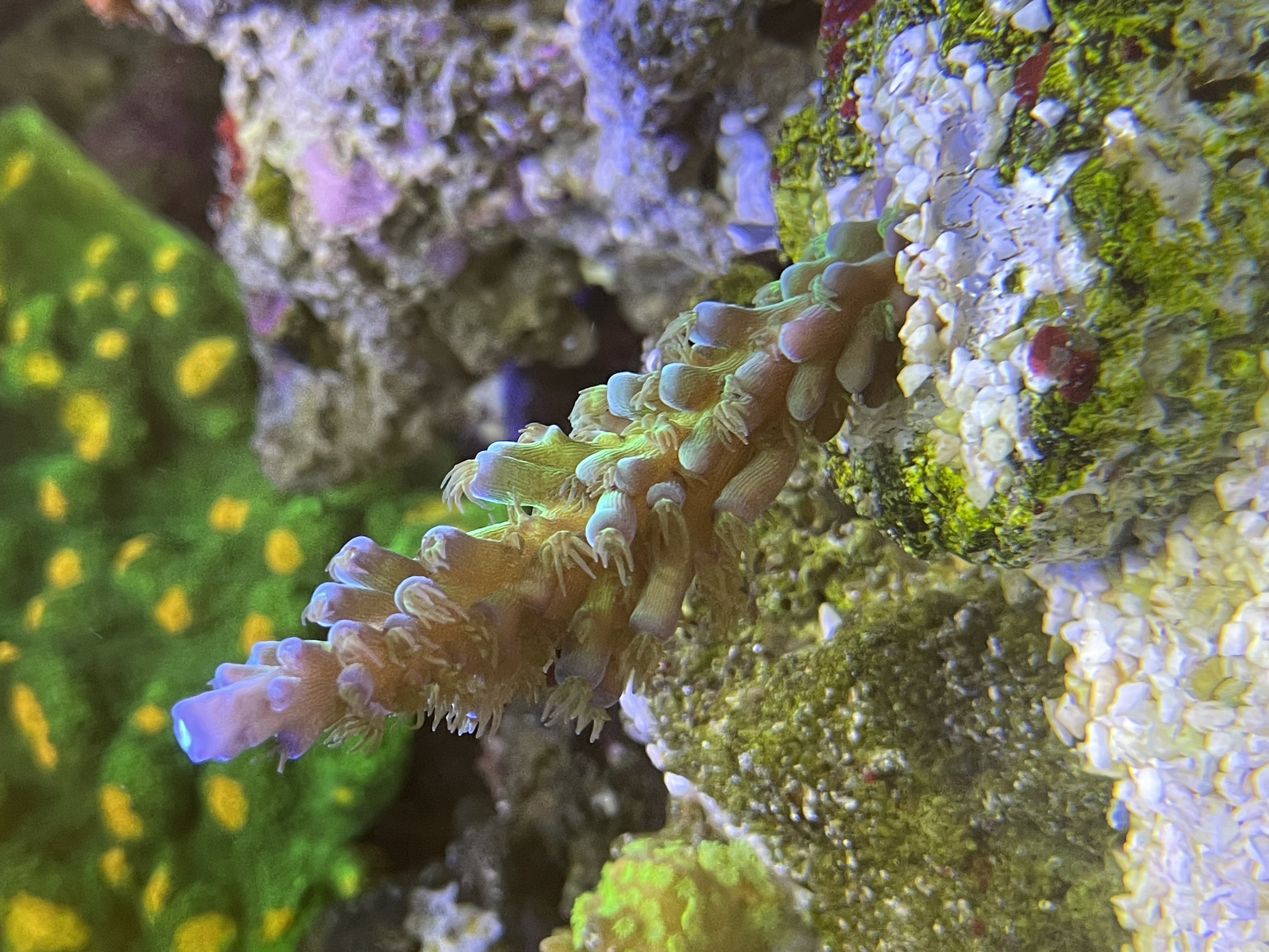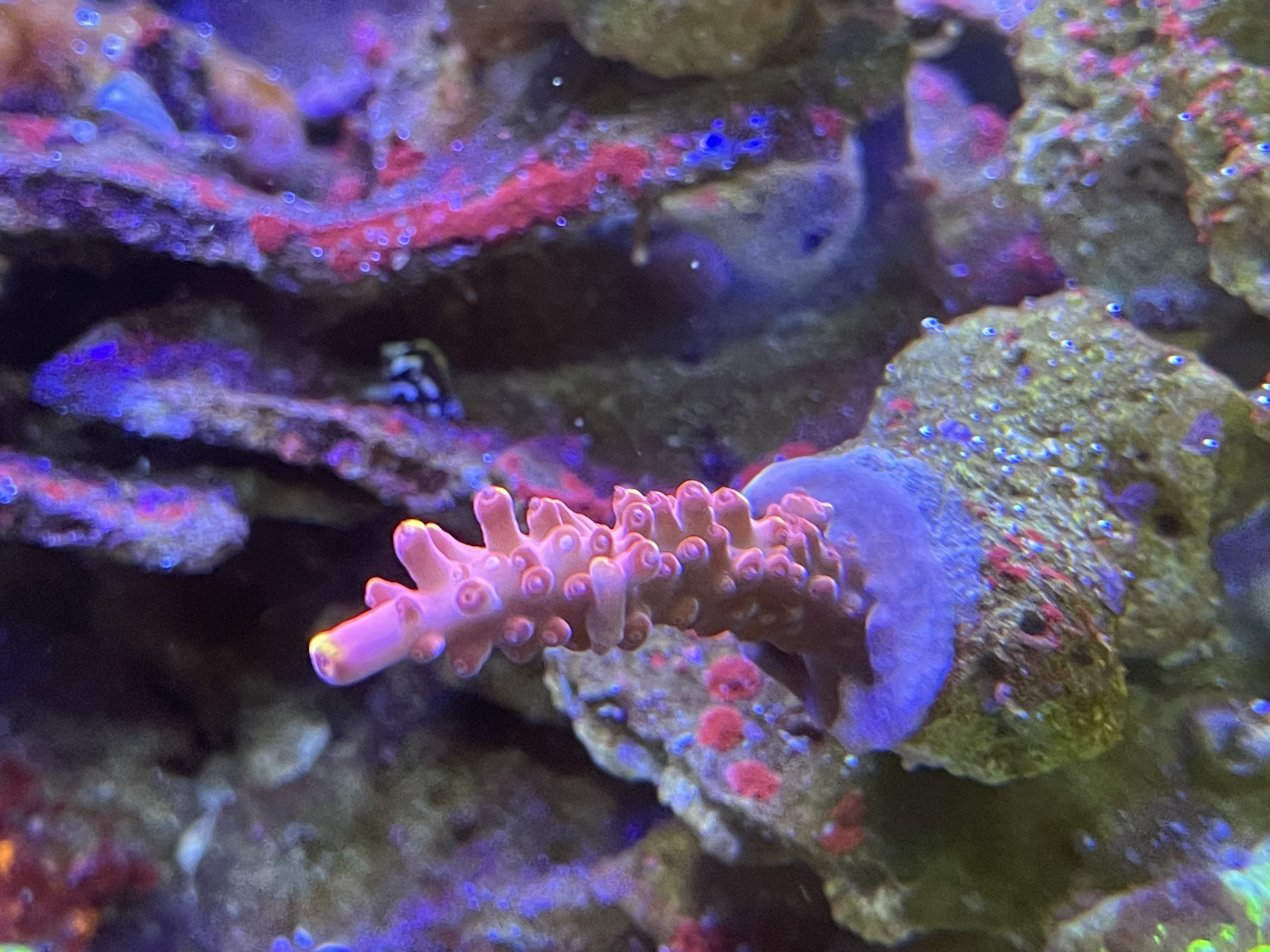 Se på mine sten, mellem alle kalkalger farverne, begynder der endelig at vise sig små pletter med dem(bemærk bivirkning af PE på korallen)