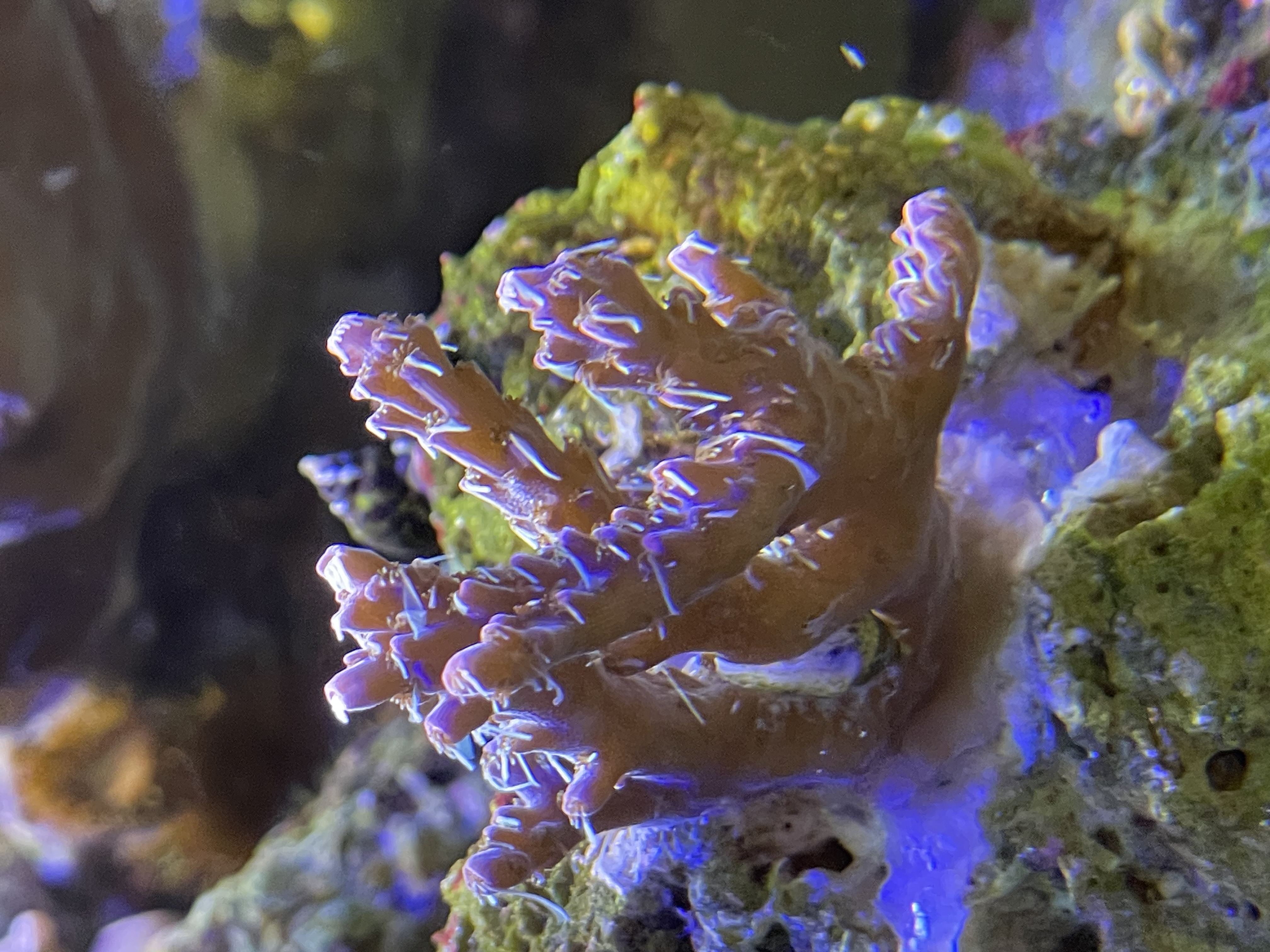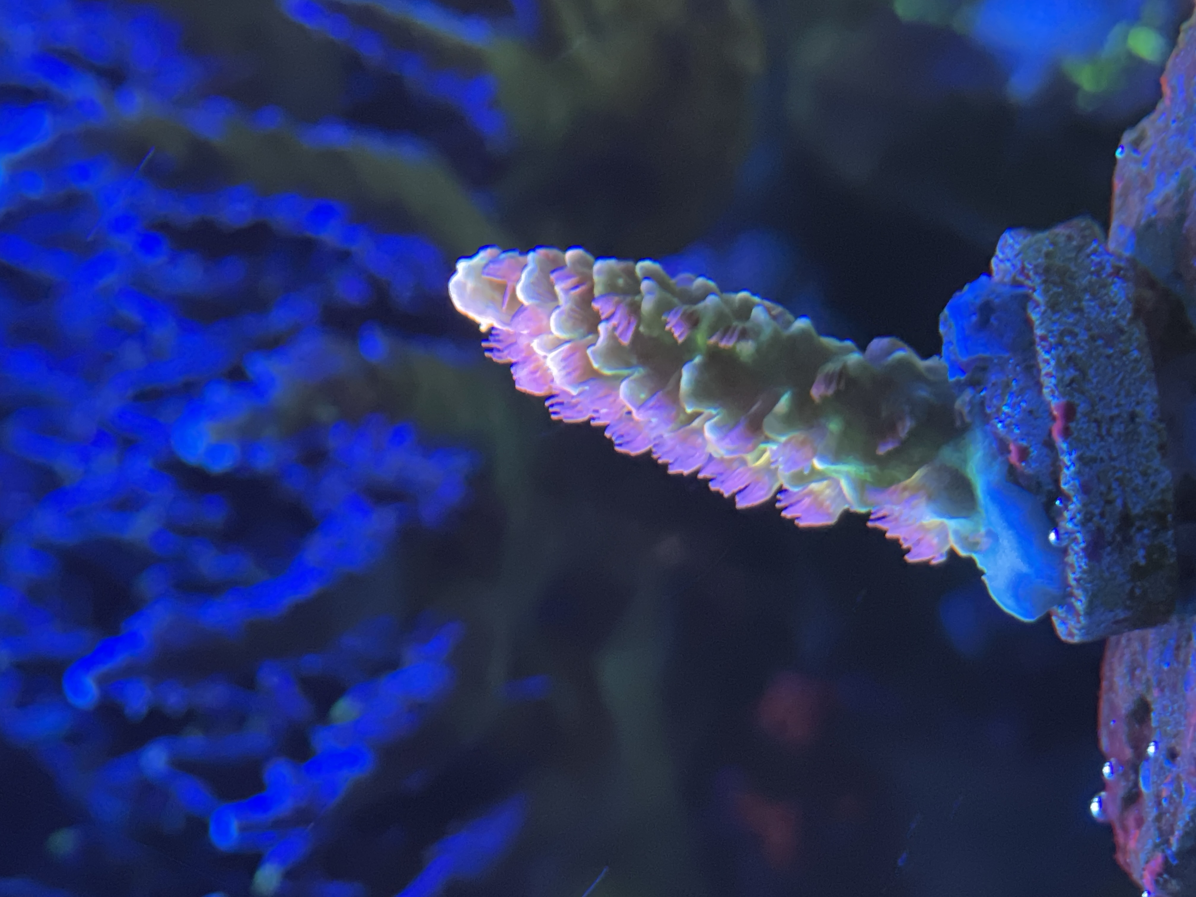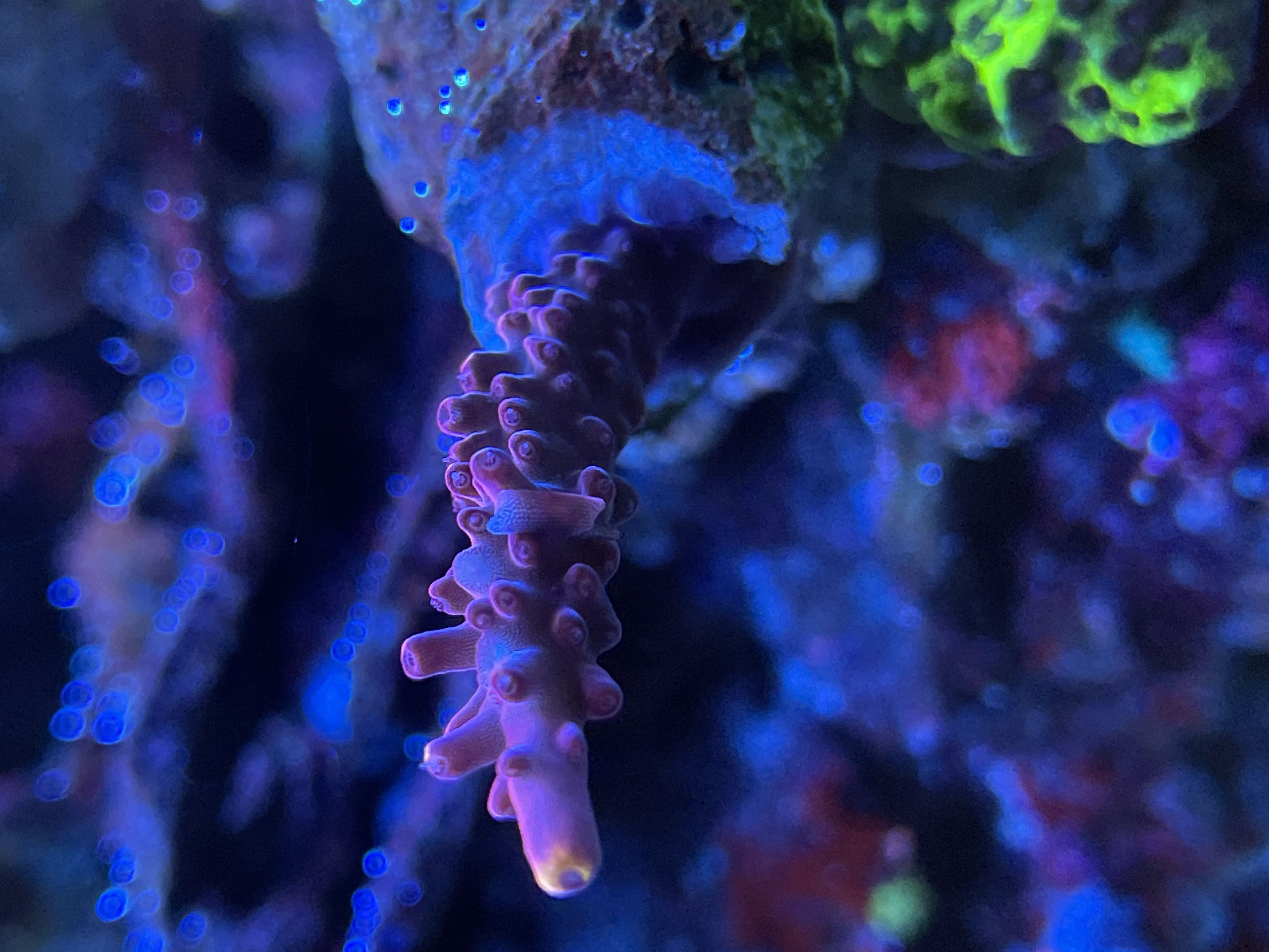 Se på mine sten, mellem alle kalkalger farverne, begynder der endelig at vise sig små pletter med dem(bemærk bivirkning af PE på korallen)