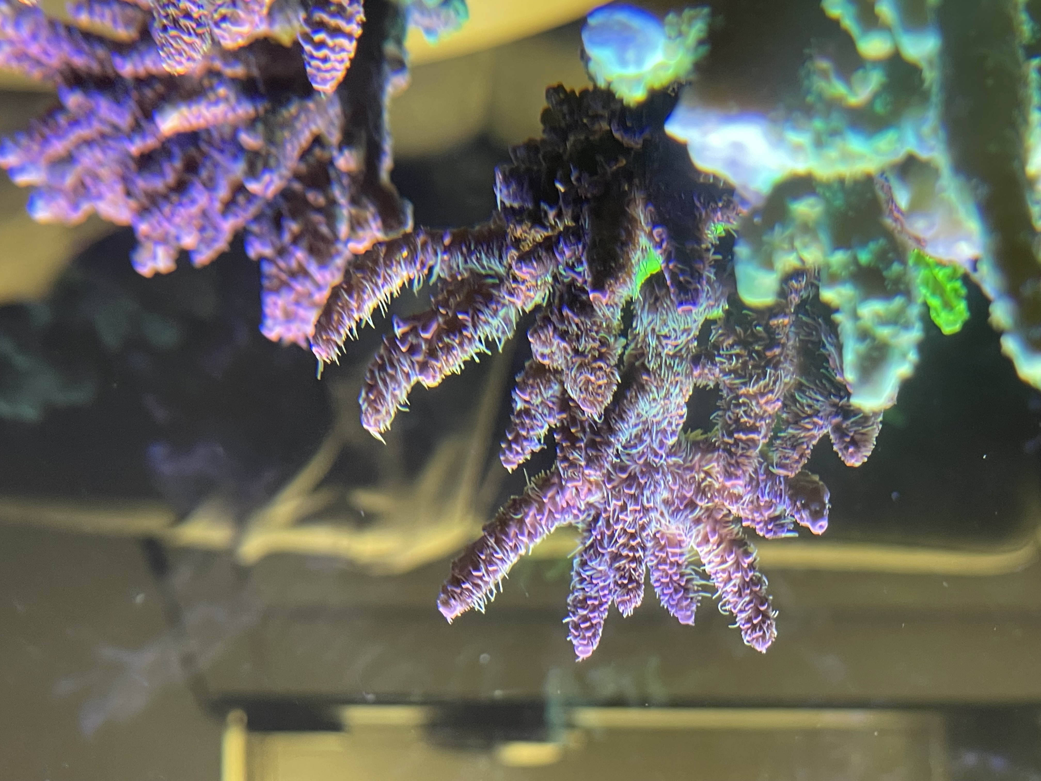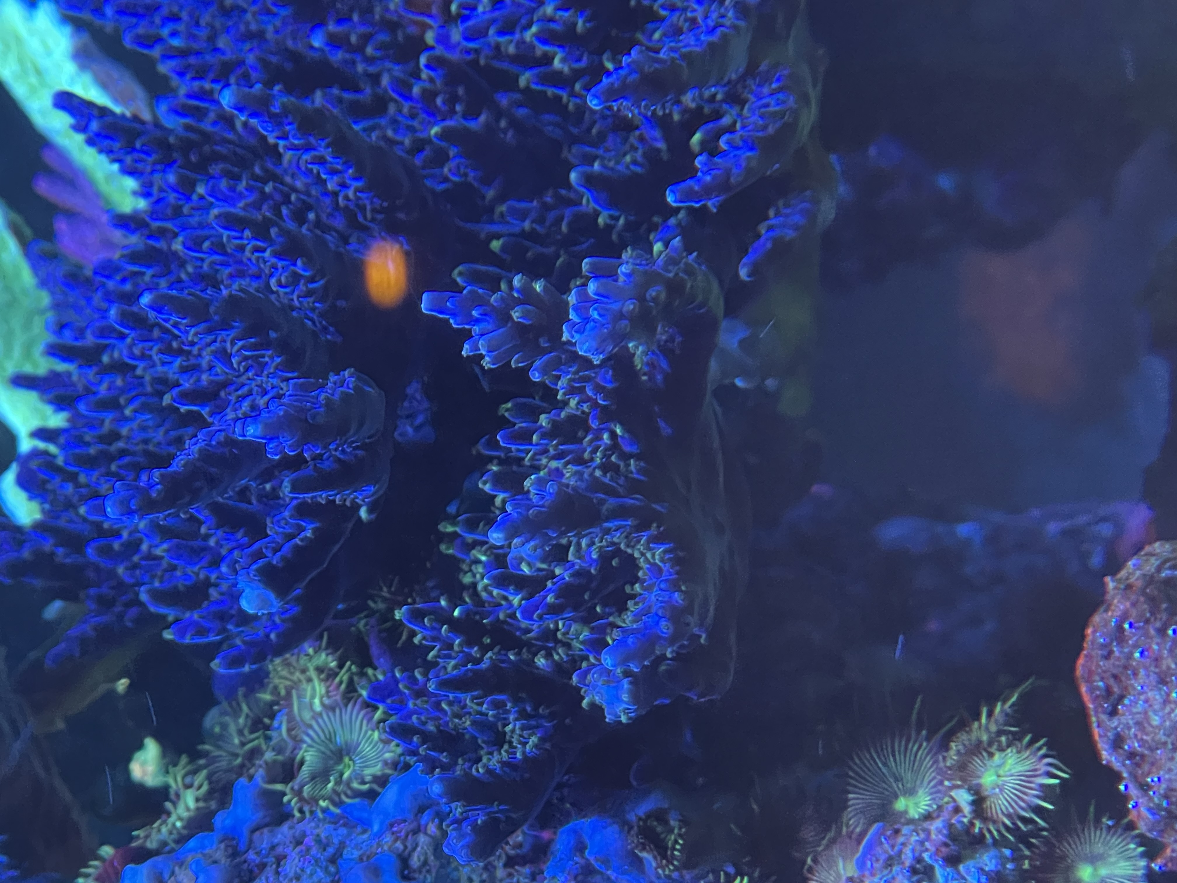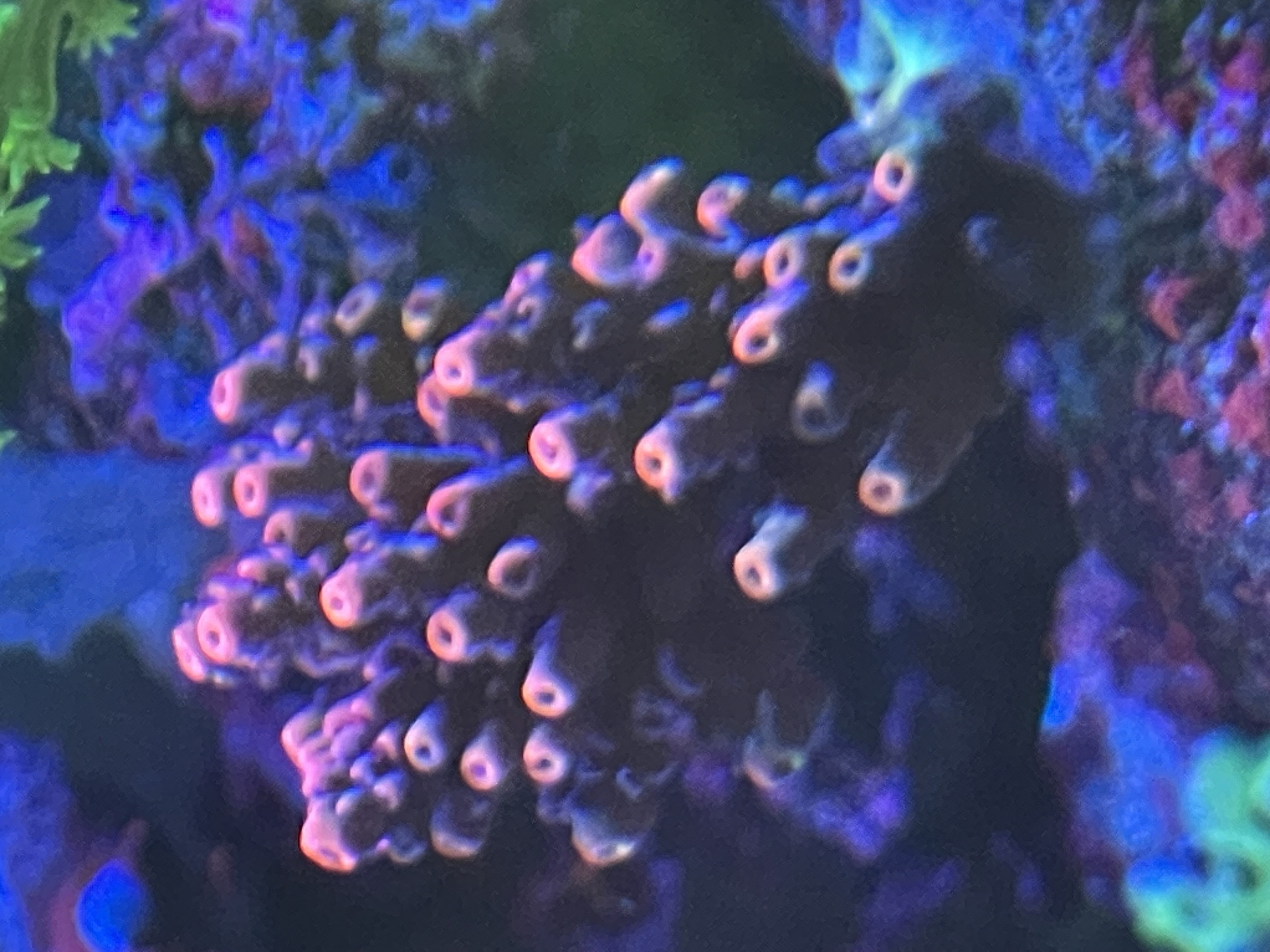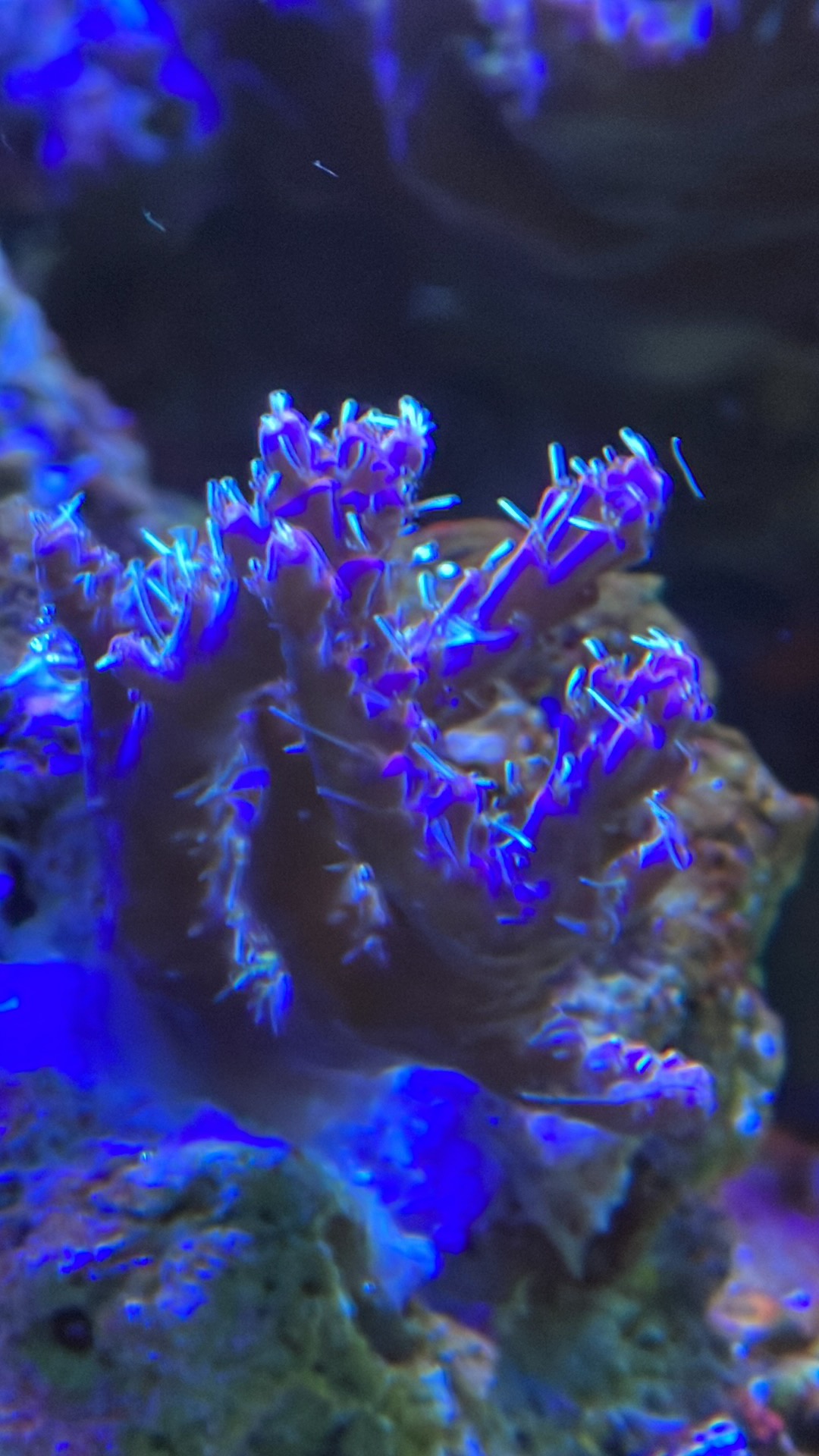 Se på mine sten, mellem alle kalkalger farverne, begynder der endelig at vise sig små pletter med dem(bemærk bivirkning af PE på korallen)