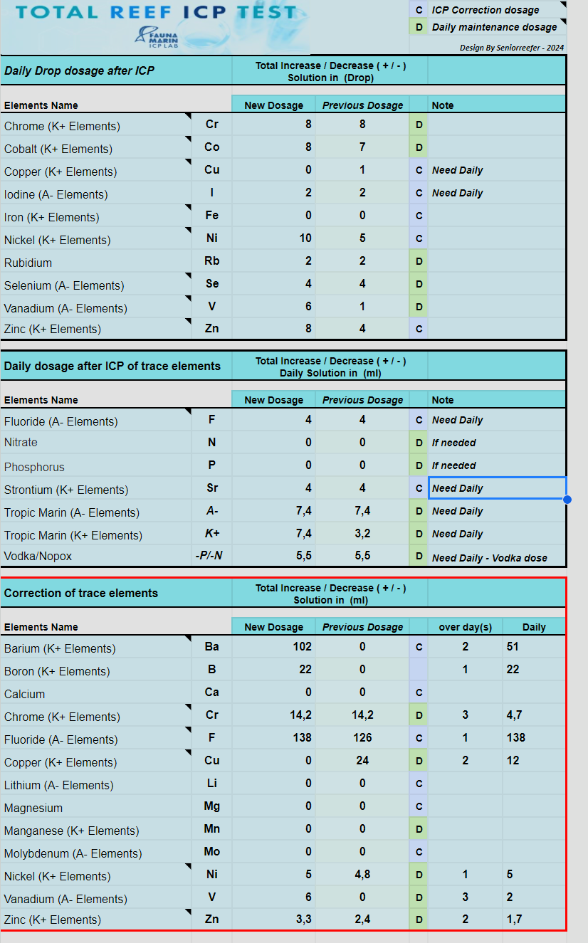 Det er også rigtigt, må kun være 0,03-0,05 µg/l OES kan Selen ikke måles i så lave områder. FM anbefaler 2-5 µg/l som allerede er meget overdoseret og i farezonen for at lave dårlige ting i akvariet i forhold til SPS.Engelquist skrev: ons 14. feb 2024 12:20 Sjovt med selen, for AquaForest advarer imod at det skal være målbart i akvarier