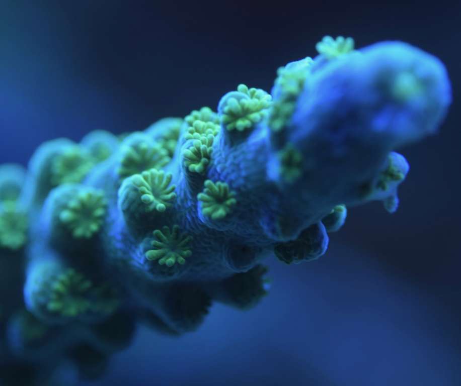 Det er en Stylopora pistilata. Den er noget anderledes farvet, end man normalt ser dem.