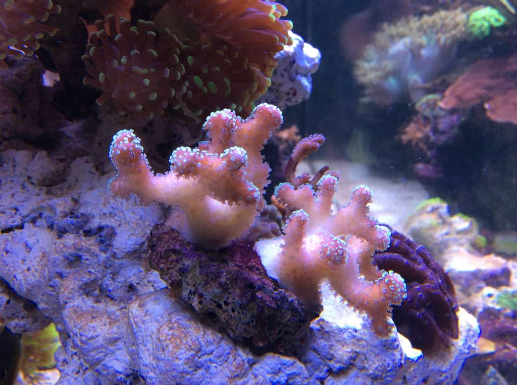 Det er denne Acropora Spathulata , pink Variant , Købt hos Dejong. :GO