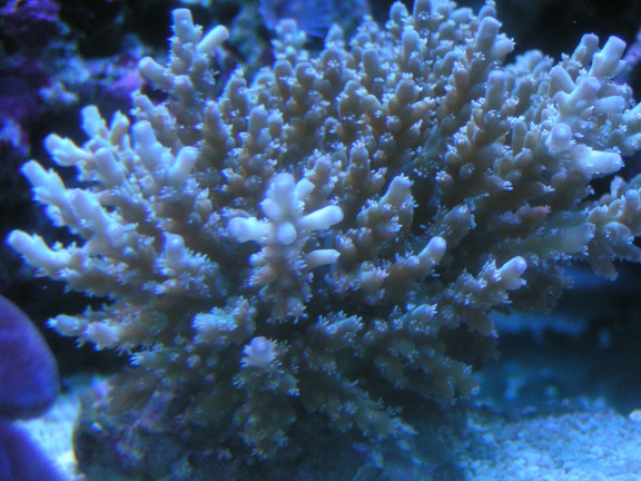 Koral fra tilbudspladen hos decocean. Den var brun, efter 4 uger herhjemme er den metallic blå virkeligt fed koral