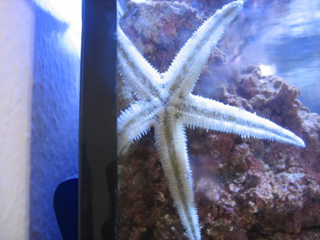så fik jeg lige et par sjove billeder af min ene søstjerne der mente den ville op til vandkanten men faldt ned på hovedet
