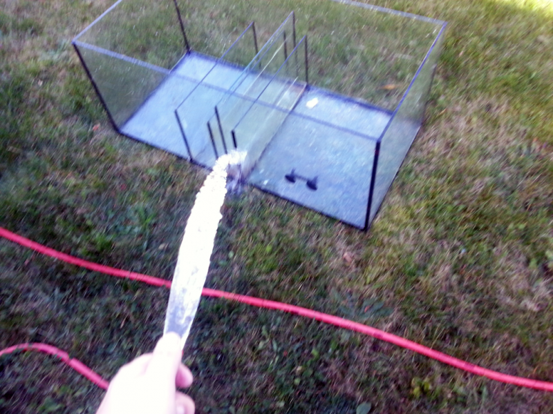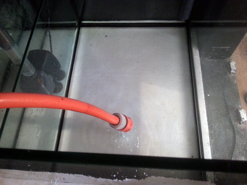 Så kom det sidste vand i akvariet og fik tilføjet lidt sand (derfor det ser lidt mælket ud (hqi også slukket for at spare lidt strøm når der alligevel er tomt