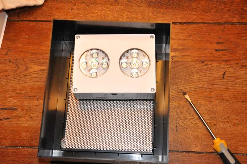 Jeg kontaktede AI i USA, med de ville ikke sende til Danmark, men gav mig kontakt til Europæiske forhandlere. Jeg valgte http://www.theaquariumsolution.com og havde en rigtig god dialog med Stuart Bartram, som endte op med at sælge mig denne lampe + controller. Selv om den efter sigende skulle være den mindste LED lampe med 10.9 cm dyb, 14.1 cm bred og 3,73 høj var den bare få millimeter for dyb til lige at kunne sænkes ned i lyskassen.