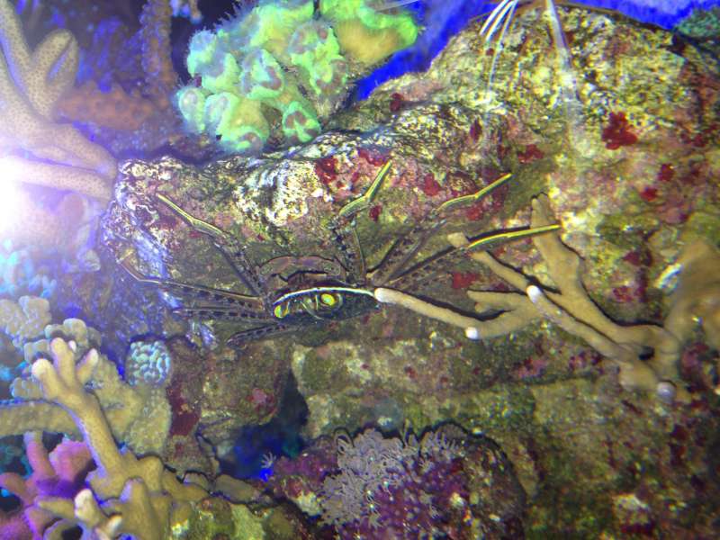 Så skete det. Vi fik simpelthen nok, Efter at have mistet flere fisk, der i blandt vores elskede kirug, vores næsten ynglede klovnfisk, scooter benny + andre, Så gik jagten ind. Vores krappe ( sally lightfoot ) var begyndt og få smag for de små og da den ikke lige gad hoppe i vores fælder eller at blive fanget af nettet. SÅ må vi sq til og løfte alle sten og koraller op. Sikke en omgang. MEN FIK DEN !!! Sa...tans krappe