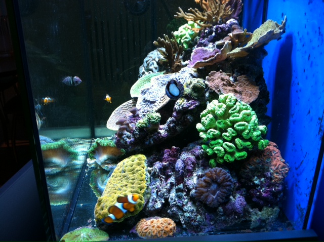 Anthias'en har jeg desværre ikke set så meget til endnu. Jeg har prøvet at få plads til så mange Montipora som muligt, men er blevet nødsaget til at ligge nogle af dem på bunden, da der var en del