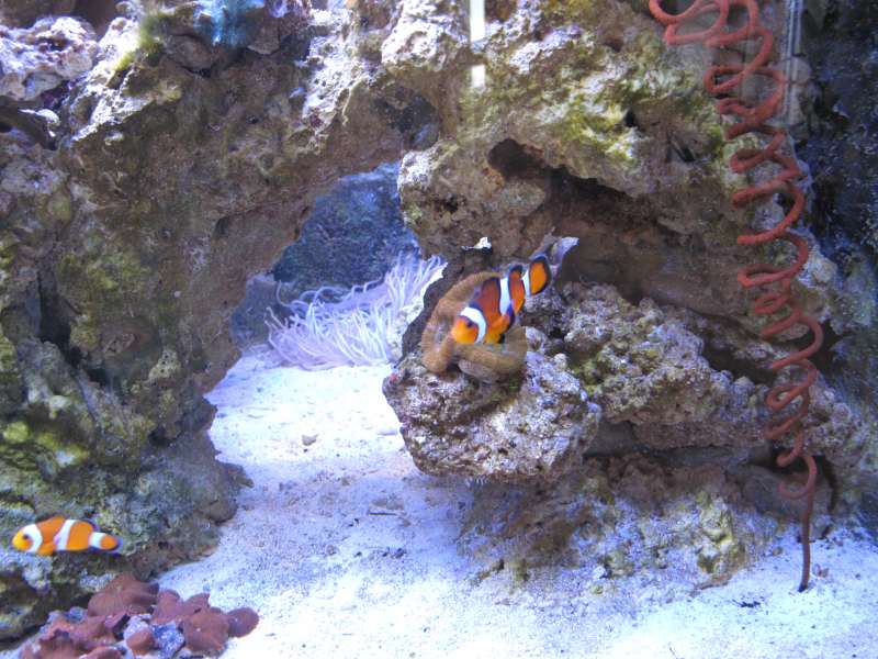 Min Macrodactyla doreensis anemone og mine to Ocellaris klovne vil ikke rigtig finde sammen...