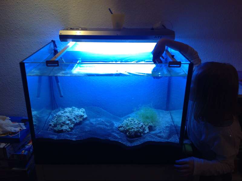 Faktisk behöver sandet heller Ikke lys medmindre jeg vil gro alger paa den.jeg er jo til azoox koraller og Havde jeg sps ville de sikkert miste zooxantheller SAA dunkelt det er Men det Gör ingenting SAA Länge man gir dyrene Mad;)