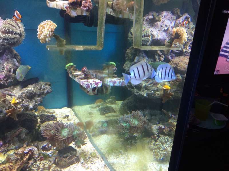 Nu havde jeg jo hørt en masse historier om convict tangs der ik vil spise osv men mine tager flage folder og plukker løs på sten og tykker lidt på Macro alger ja alt i alt rigtig aktive og sjove fisk og min kone snakker noget om der er smukke med det sølv der reflektere lys og bla bla..... Alle fisk er smukke afbrød min datter hende, man er lidt stolt nu.