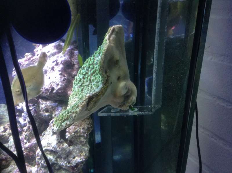 Ja ja filfisken går bare i et 160liters sammen med søhestene og der kan den ik rigtig lave ballade og hvis den gør bliver den brugt som fil til at pusse kanter på de næste acryl frag hylder.