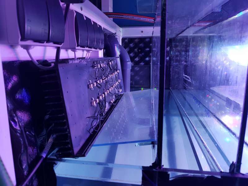 Sidst har jeg lukket hullet mellem de 2 scrubbers , havde lavet en konstruktionsfejl som blev rettet til og samtidig er mellemrummet nu vandtæt så et T5 ameratur kan stå på bunden og ét hænge fra "loftet" ved behov.