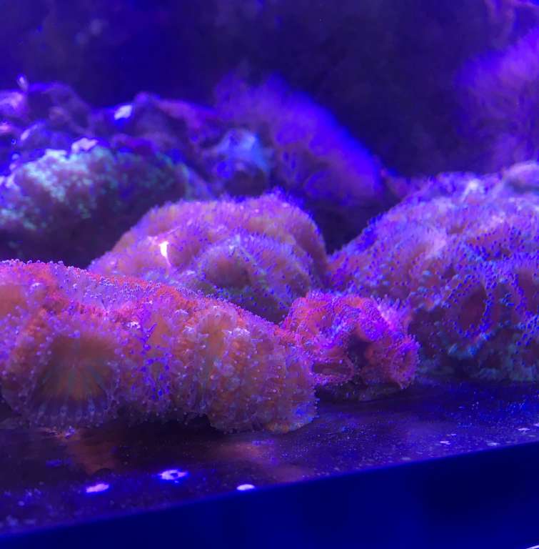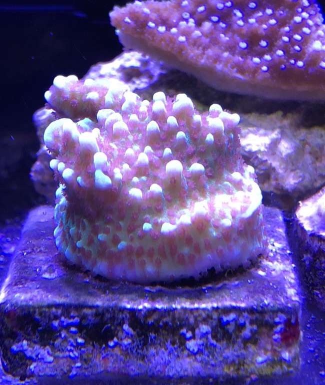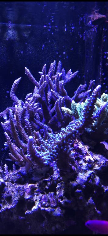 Vi tæller efterhånden 14 forskellige acroporaere og 18 montiporaer. Og der til alt det løse . Det vel ok på 260 liter