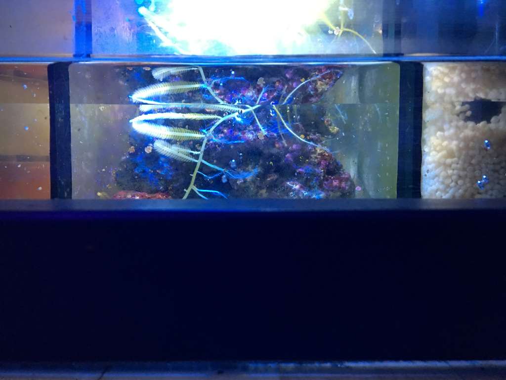 Så tror da faen mine Acro'er 'taber' væv, ikke folder polypper ordentligt ud og at der røg en pink millepora i svinget.. Taget på fersk gerning her til aften siddende i bunden af en A. nana og mæske sig.