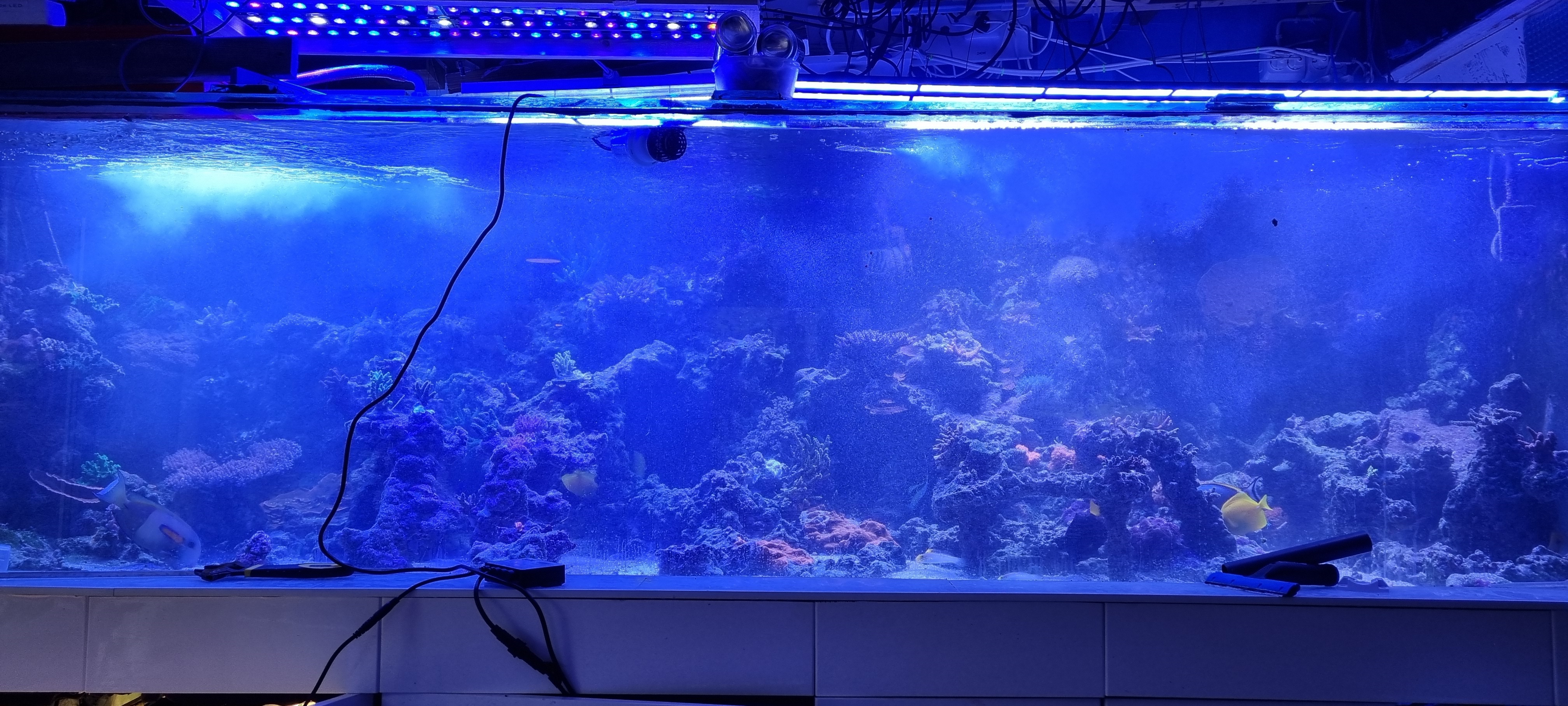 Jeg har samme problem i "Svempas" akvarie på 4000 liter hvor jeg dosere ½ liter hver uge for at holde NO3 over 10. Han dosere 100 ml NoPoX hver dag da PO4 er høj da han ikke har et refugium, men mange koraller.