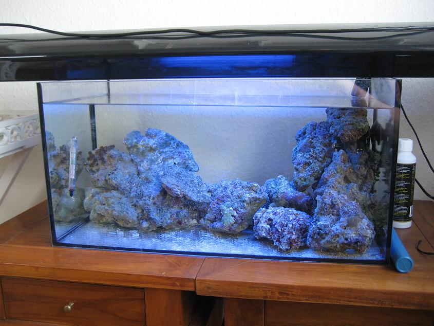 Akvariet skal kun bruges til koraller og 2 rejer, så derfor vil jeg prøve at køre uden skummer, og så bare skifte 10-20% vand om ugen.
