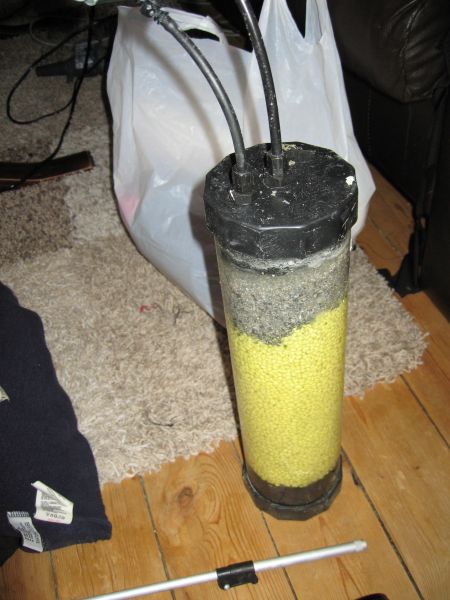 Derudover har jeg overvejet at skifte de to udblæsningspumper ud med en større med samme kapacitet. Den vil jeg så hænge lige over filterposen med keramik og forbinde med et T-stykke, som igen munder ud i to udblæsningsslanger. Jeg mangler dog at finde ud af hvor man køber stumper - eksempelvis plaststumper med gevind der passer til monteringsboltene ved udblæsningen osv.