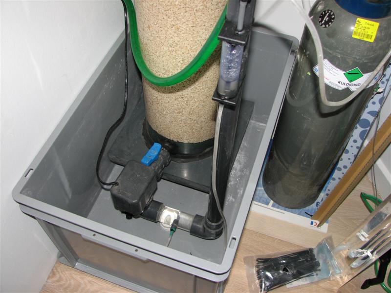Hvor vandet løber retur i min sump har jeg en hane som gør at jeg reducere den mængde som kommer retur fra reaktoren. Jeg holder med andre ord fuldt tryk ind på reaktoren via min returpumpe og så reducere jeg vandflowet i aller sidste led, lige før det løber retur i sumpen.