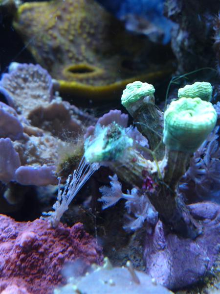 Tidligere i dag opdagede jeg at min Echinopora(?) var godt i gang med at overfalde et hoved på min Caulastrea