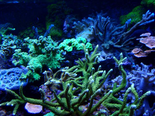 Jeg er vild med lysfordelingen ved T5, alle de mørke hjørner forsvinder i akvariet og man får meget mere lysplads til sps´erne. Mit væsentligste problem i øjeblikket er luksus pladsproblemer i baljen.