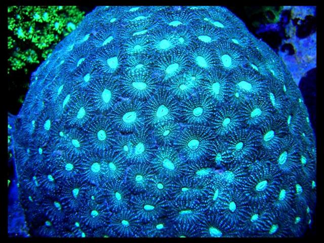 Billederne er taget under de forhold der er på koraløen. Det er ment som en service for at evt. interesserede kan se hvad der er i butikken så de ved om der er noget de vil køre efter. Hvis man ikke har blåt lys over sit akvarium der hjemme bliver korallerne naturligvis ikke så blå i farven hvis man sætter dem i sit eget akvarium. Farve på lys har været diskuteret mange gange her inde før og det må vist siges at være en smag sag. Men gudskelov kan vi jo alle gøre som vi vil hjemme hos os selv. Men jeg kan ikke ændre i lyset på DecOceans koralø så billederne bliver den farve som lyset er over koraløen. Jeg skriver i toppen hvad lys der var da billederne blev taget.
