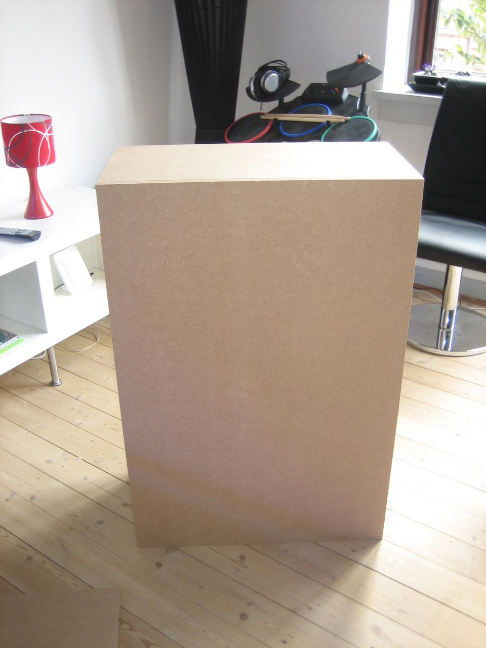 så blev der smækket et skab sammen til det, jeg er lige blevet færdig med magneterne der skal holde lågen på plads samt håndtag idag, så nu mangler jeg bare lige at få hylderne i og så en omgang maling :)