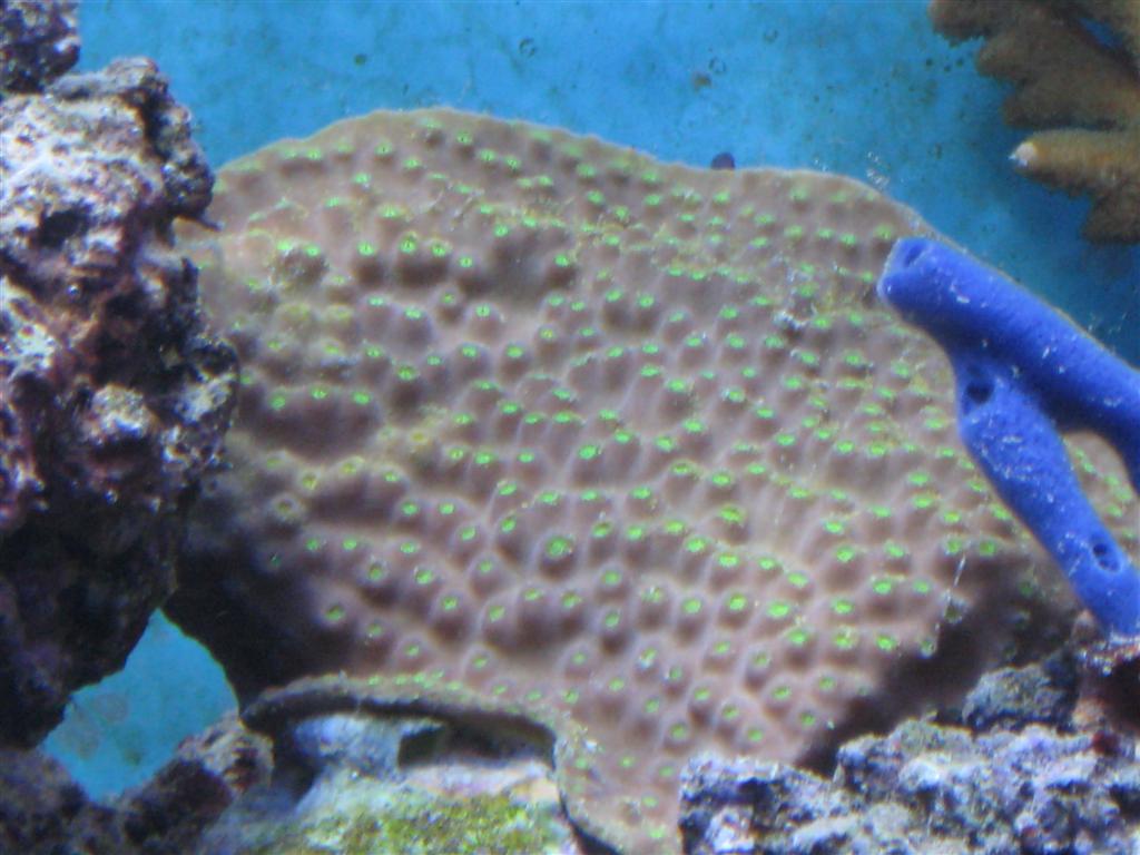 på billedet er den lidt brunlig, men det var grundet lysmangl, nu er den lysegrøn med grønne polypper.