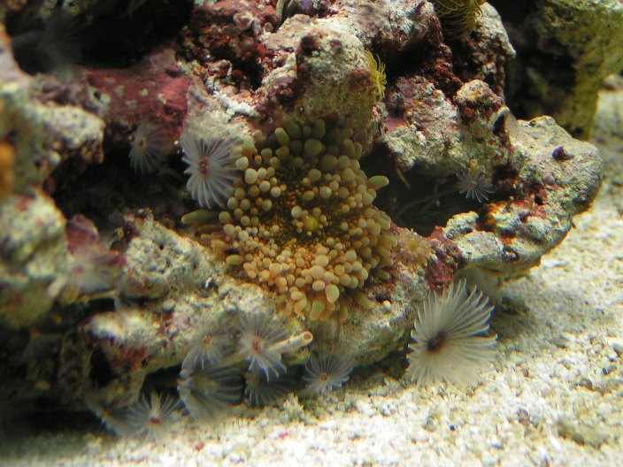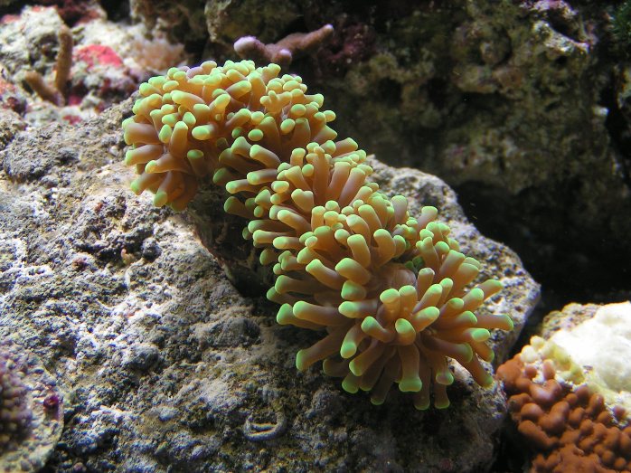 sender lange brændende tråde ud på bunden for at finde føde. Så den skal ha' mindst 15-20cm afstand til nærmeste nabo koral/skive, eller risikerer de at blive svitset og dø.
