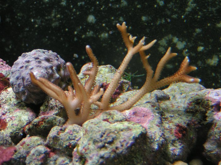 2 små blå acropora fragmenter, de er blevet rigtig flotte, og jeg glæder mig til de vokser sig store.
