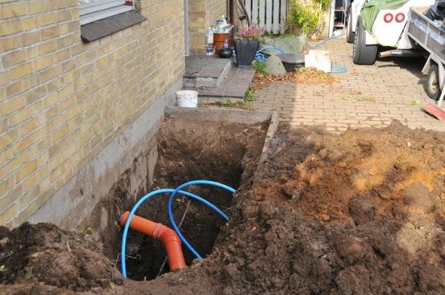 Smeden konstanterede at tilgangen var knækket lige indenfor soklen, så jeg har kæmpe akvarie under gulvene. Heldigvis er meget løbet i en kanal og ud i min udestue, så der er en del CF sten sunket 20 cm. En del af gulvet på badeværelset er osse væk så vi har ingen