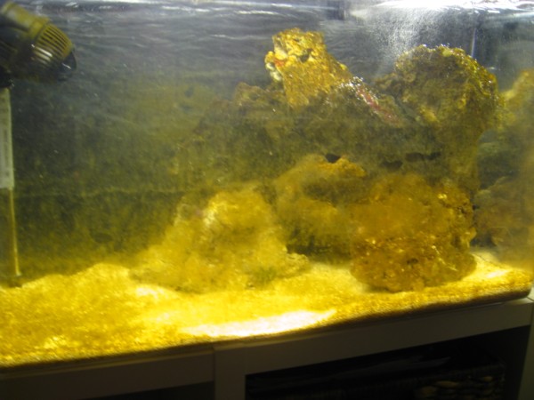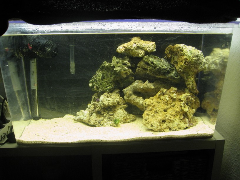 salinitet ligger på 1.024 og der er kommet 7-8 kg levende sten i fra Klovnfisken idag.