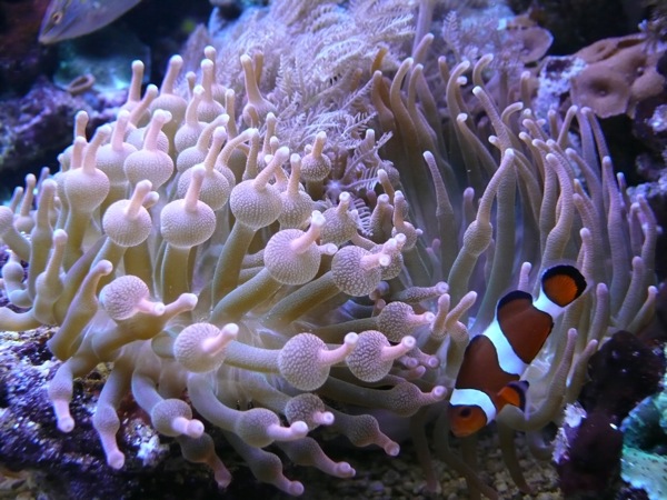 For et par dage siden besluttede jeg mig for at fodre anemoner med nogle optøede rejer, og sørme efter et par timer have den ene anemone delt sig! Så nu er der fire anemoner-én til hver af klovnene