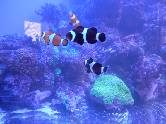 Jeg startede op med et akvarie på 128 liter med de to klovnfisk og kardinalfisken. Efter et par år synes jeg at det blev for lille og kedeligt ,og så købte jeg dette hjørneakvarie.