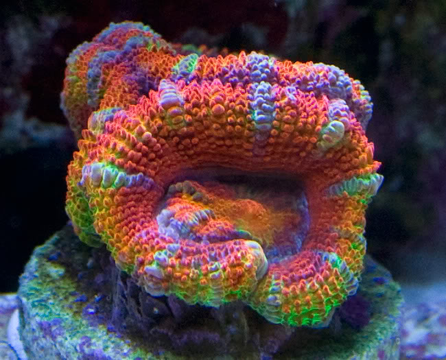 På youtube så jeg forskellige videoer af folk som fodrede LPS - især acans.. Den ene video var især fascinerede, det var en acan koloni som blev fodret med PELLETS! Det åd den grådigt, op til 3 pellets i hver mund...