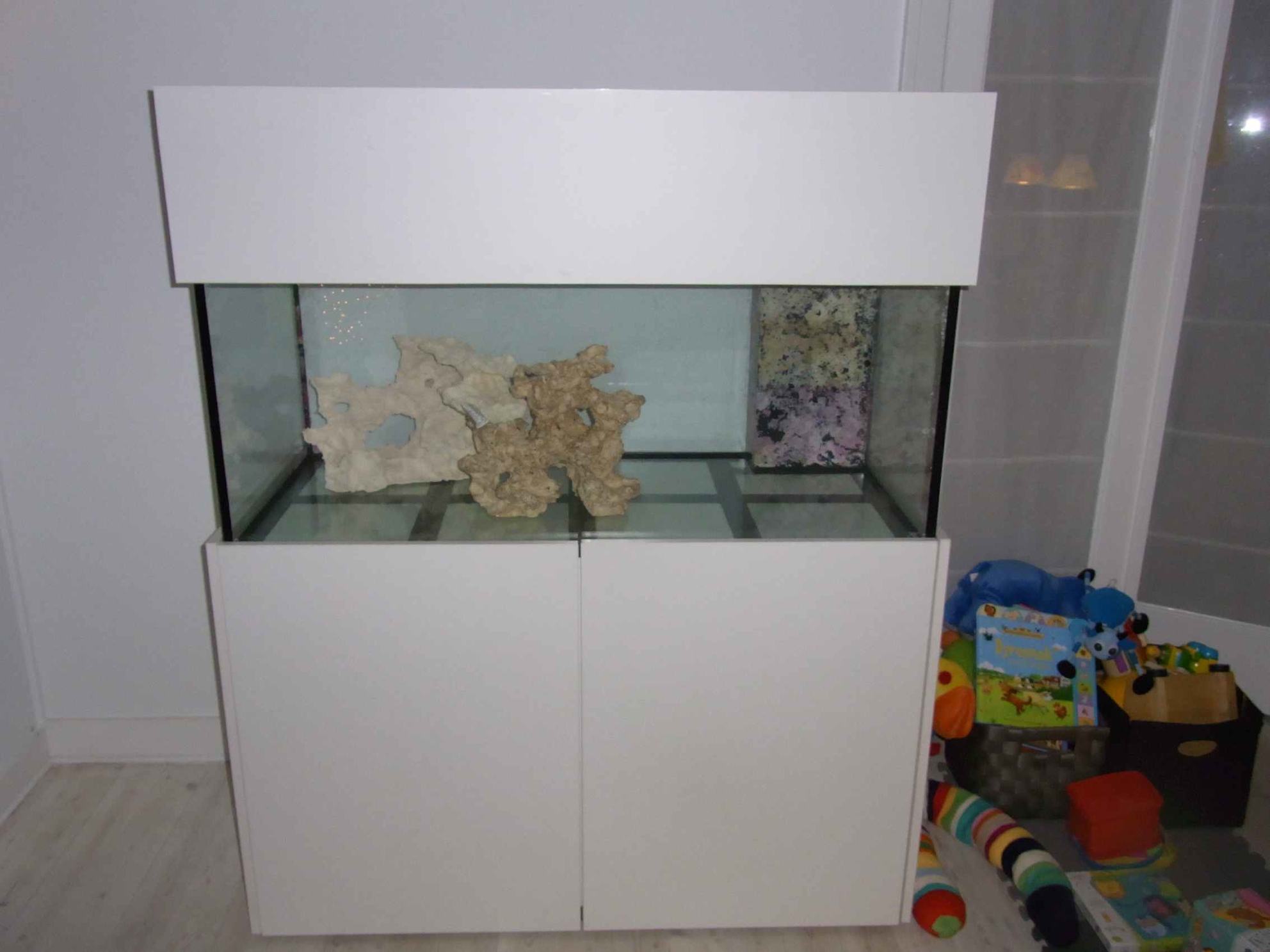 Så skete der lidt. Akvariet er kommet ind ad døren og alt teknik pånær lys er kommet. I løbet af næste uge skulle alt pvc og teknik gerne blive samlet osv så der kan komme vand i i weekenden.