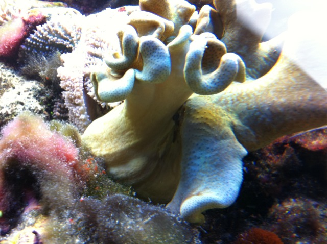 For ca. 3 uger siden, fik jeg en ildanemone i baljen, som har sat sig ved siden af læderkorallen.