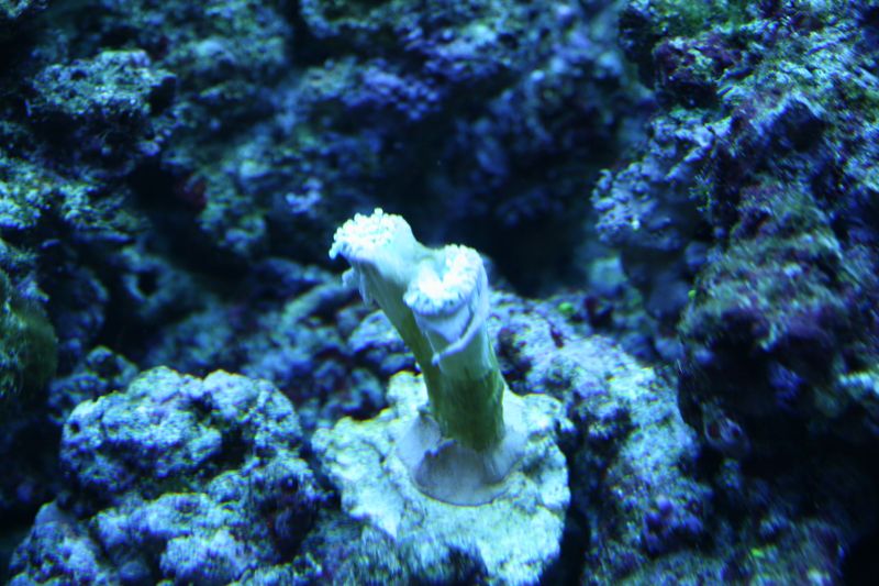 Jeg har købt mig en aflægger Euphyllia med to små hoveder nede hos Carsten. Jeg er ikke helt sikker på hvad det er for en, men jeg gætter på en Glabrescens, dog ser den lidt mere hvidlig ud end dem jeg ellers har set.