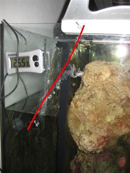 Jeg fik et akvarie her inde fra der havde en flænge og der limede jeg glas uden på og det holder fint revnens størlse har ikke ændret sig.