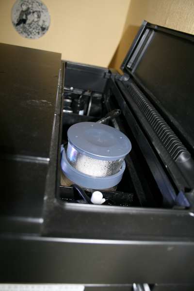 jeg startede med at tage toppen af akvariet på grund af varmen, så pillede jeg låget af skummeren da det sprøjtede op i gennem låget (der var man ikke særlig populær) skar bunden af en sodavands flaske og puttede den oven på