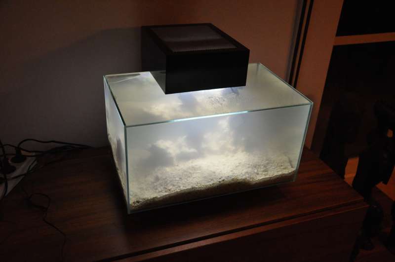 Egentlig ville jeg have haft et større, men den effekt det giver at kunne kigge ned i akvariet ovenfra, ville jeg ikke gå glip af.
