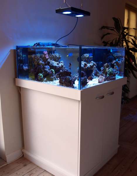 Vand, levende sten, koraller og fisk er alle overført fra mit nu nedlagte 350 liters akvarium.