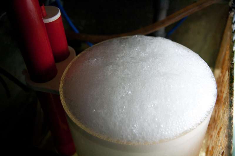 Den laver fine små bobler, og "gurgler ikke" ... men hvis vandstanden er under skumemrkoppen, laver den ikke skum..