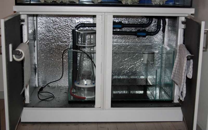 Det meste af det har jeg selv lavet. Akvariet har jeg selv bygget, lampen er DIY, lyskassen osv. Skabet er to standard Ikea køkkenskabe, som er blevet forstærket med lægter og sat på en ramme af vægregler. Desuden er skabet blevet lydisoleret efter bedste evne med skumplader.