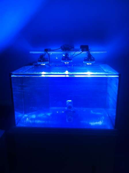 Har 2 stk a 14000 k 50w og en royal blue 50w i midten :GO gir et kanon godt lys.