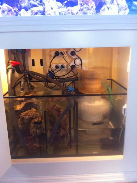 Vil tro at der ca er 55kg levende sten i og 15kg i sumpen da jeg ikke vil ha for meget i akvariet.