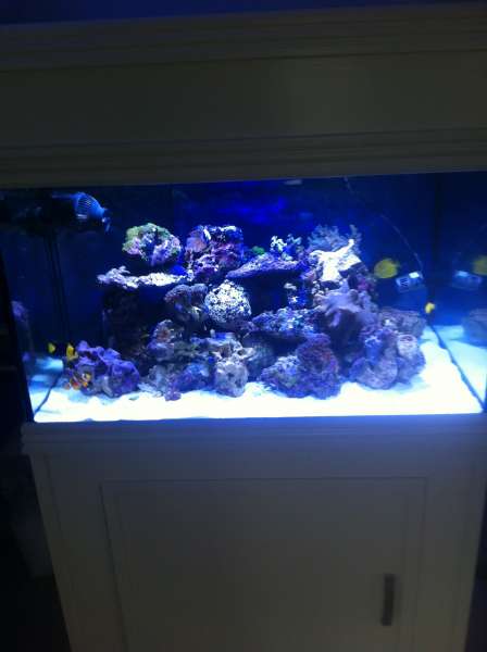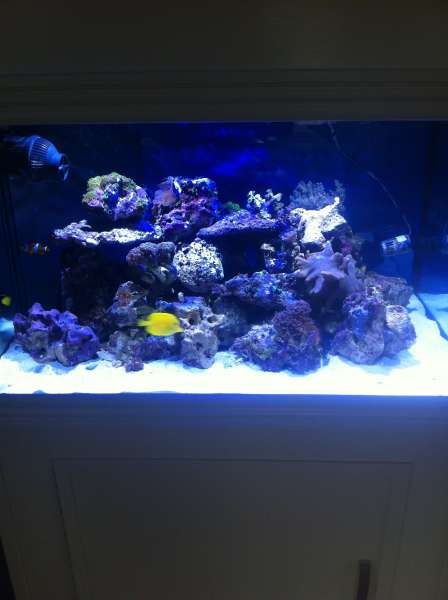 Akvariet er et helglas akvarie på 290 liter mål h 50 b 90 d 65.