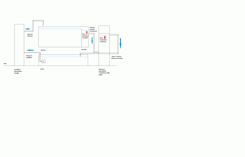 Fra sumpen pumpes til indgang sandfilter og fra sandfilter udgang tilbage til akvariet.