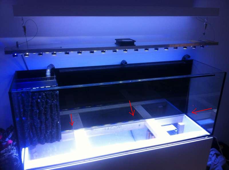 Nu har jeg så rykket akvariet lidt længere frem, med det resultat at det kun lige hviler af med 0,5-1 cm på den inderste rem.